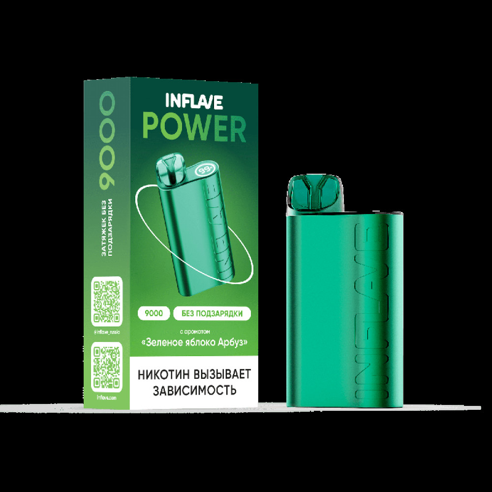 Электронная сигарета INFLAVE POWER 9000 затяжек Зеленое Яблоко Арбуз - купить в Кемерово