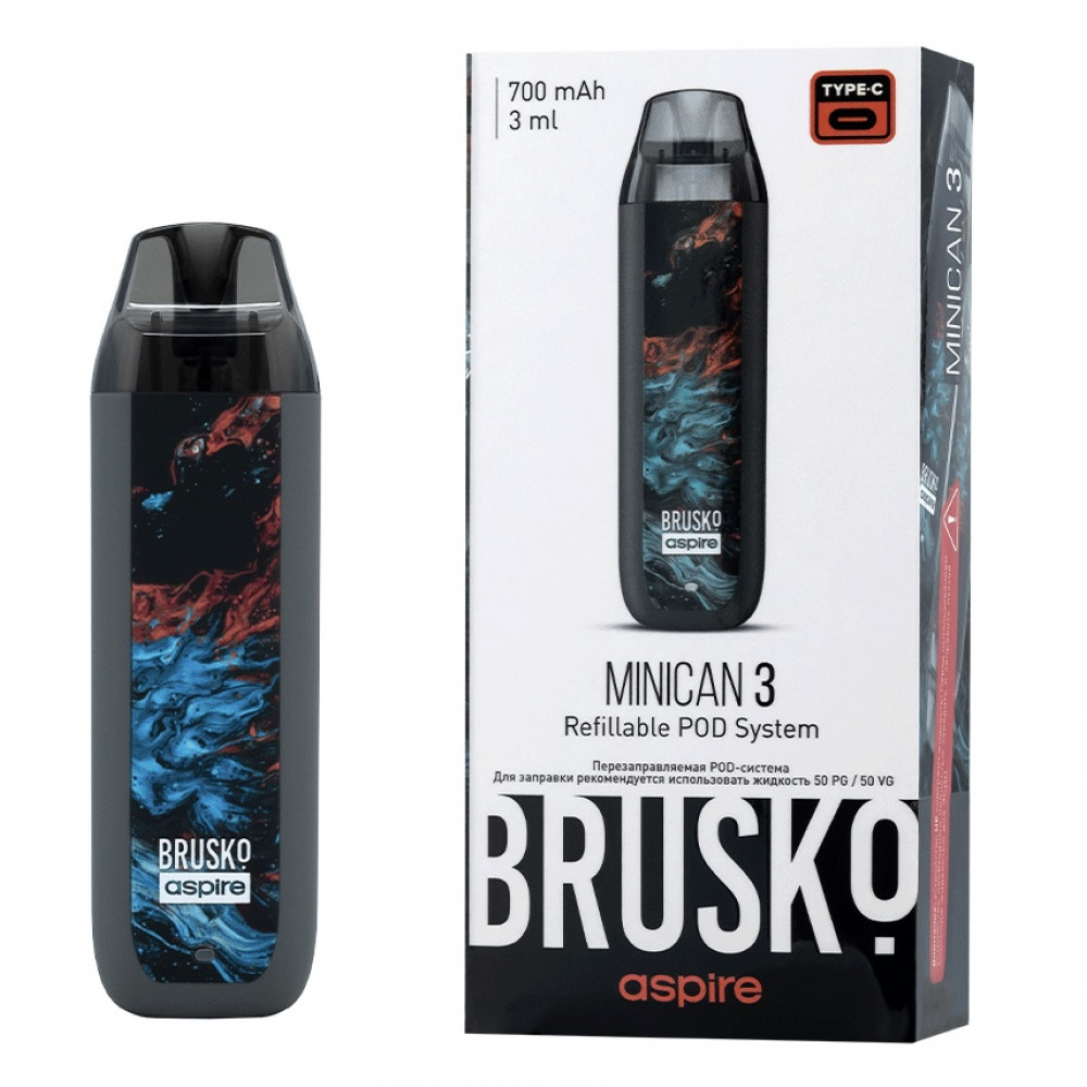 Перезаправляемая Под-Система Бруско Миникан 3 (Brusko Minican 3) 700 mah, Серый Флюид - купить в Кемерово