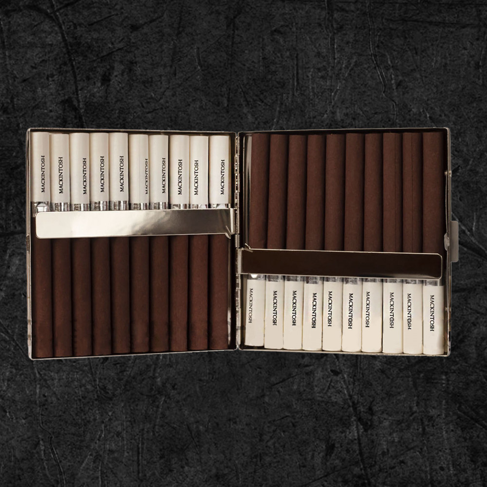 Инновационная упаковка: Mackintosh представлен в металлическом футляре с пружинным замком, что сохраняет аромат и подчеркивает элитарность продукта.